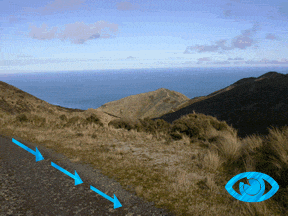 Eye SpyWellington, New ZealandBox and clues by Team Psychokiwi, stamps by AM&PM and RTRW (Connecticut, USA). Consider adding onto this series. Supplies: picnic, windbreaker, and a clear day. Note that these letterboxes do not have stamp pads included, so bring along a couple of your favourite colours. Difficulty: We walked this in 3 hours including stopping multiple times to take photos, checking out boxious spots, and eating lunch. A good one to do by bicycle. Kid and dog friendly. Clues:Follow the blue arrows, spy with your eyes, under the red arrows, you'll find your prize...
